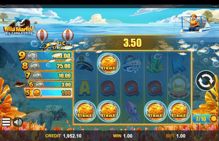 It is also the case that when you play the Wild Marlin! Big Game Fishing online slot, you will stand the chance of triggering some special modifiers. The Epic Strike Feature is perhaps one of the most prolific within the game, offering you the maximum payout of up to 100x your bet once it is activated. Bank ‘em Wilds are also present on the reels of the slot, offering an extra perk for you on the 10 spin they’re visible on. And standard wilds are there to ensure this is the case. The final addition to the slot is its free spins round, triggered by three oysters.